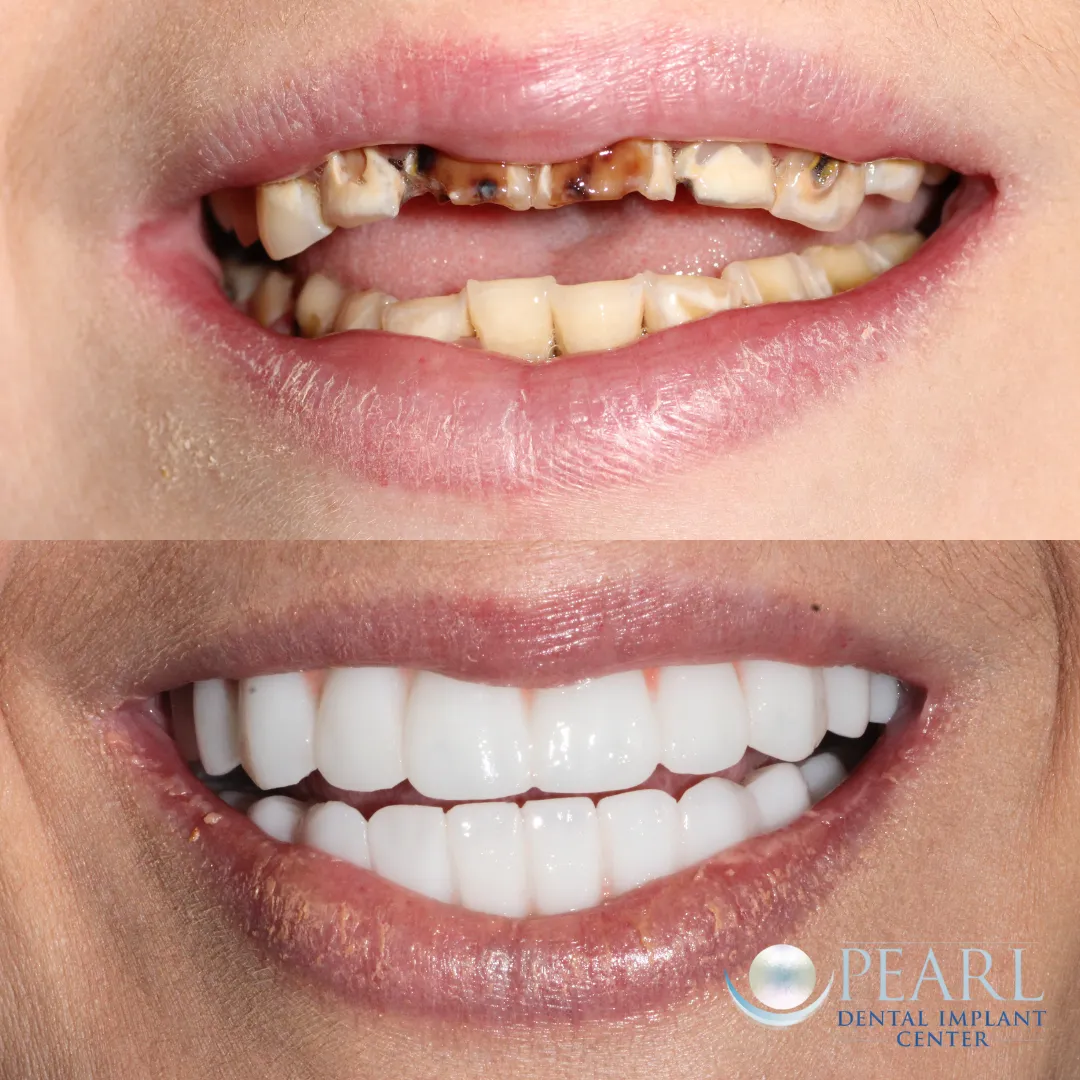 After treatment at Pearl Dental Implant Center, patients experience a dramatic transformation. Using a proven full-arch dental implant process, our certified implant doctors replace failing teeth with strong, fixed, natural-looking zirconia restorations — often in as little as one day. With advanced 3D imaging, precision surgical planning, and a standardized Pearl implant system, patients regain the ability to eat comfortably, smile confidently, and enjoy life without the limitations of removable dentures.